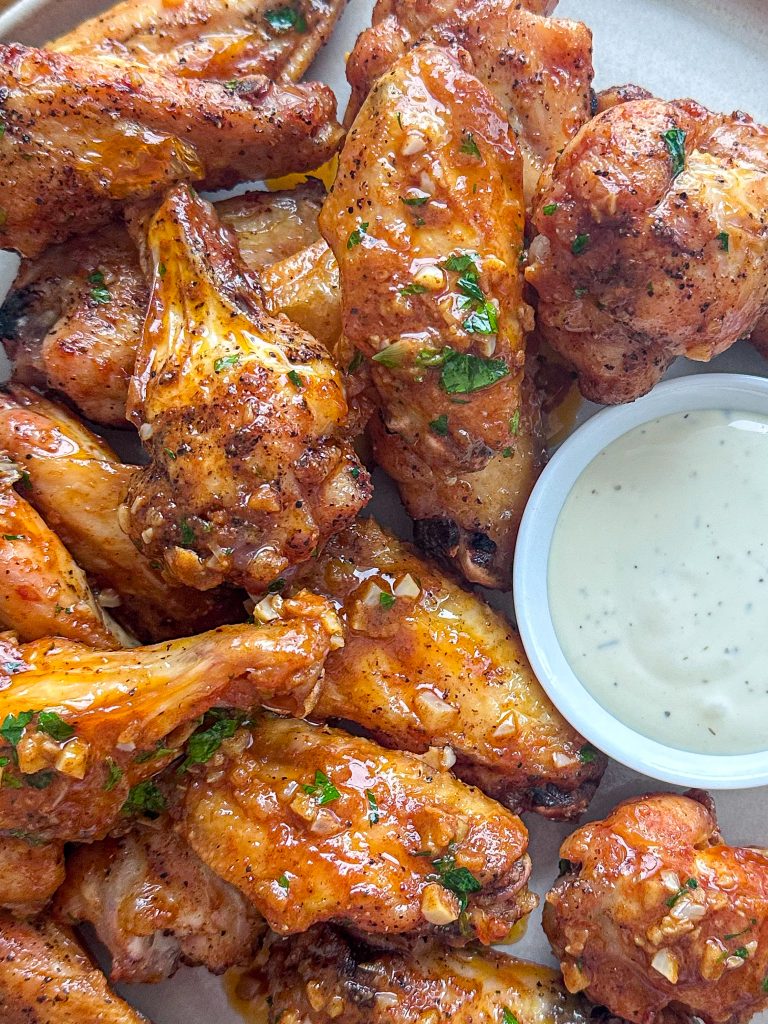 Cowboy butter started as a steakhouse-style finishing sauce—melted butter blended with garlic, spices, dijon mustard, and lemon. It’s was made to be spooned over grilled meats, but it also makes an incredible sauce for chicken wings. The butter carries so much flavor while the acidity and smokiness keep things from feeling heavy.