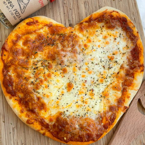Once you have roughly a 12" circle, cut out a "V" shape at the top. Now, use your hands to create a softer edge. Refer to my video to see how I do it. Then, bring the bottom of the pizza to a point using your hands.